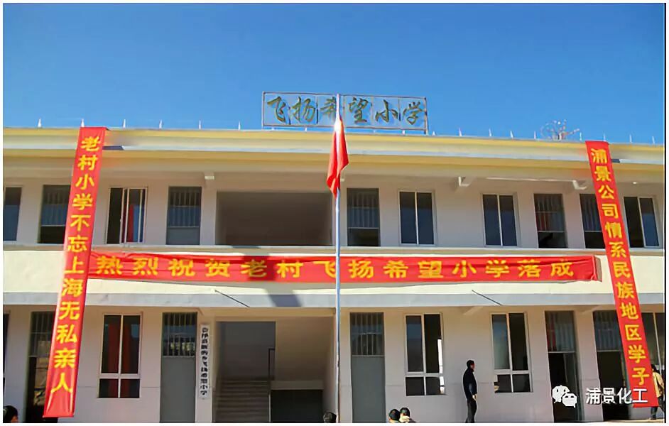 该校由浦景化工董事长诸慎先生于2008年出资援建。自2006年起,浦景先后在甘肃及云南援建了两所飞扬希望小学,每年8、9月的爱心互动更是历年的重要传统,山区孩子们的生活、学习状况牵动着浦景员工的心弦。