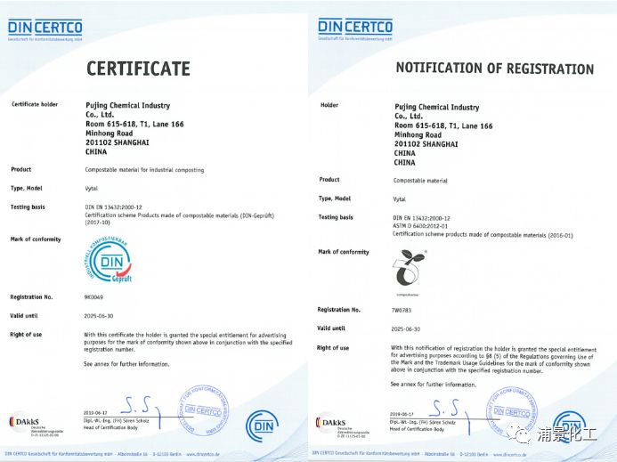 所开发的Vytal树脂不仅能满足工业堆肥要求,还可以满足家庭堆肥、土壤掩埋降解及海洋环境降解的要求,是目前降解性能最好的环保材料之一,现已获得工业堆肥标志证书及欧洲生物塑料协会Seedling标志证书。